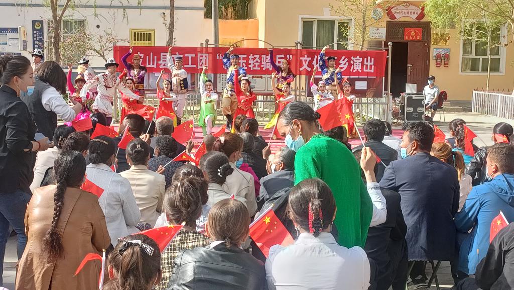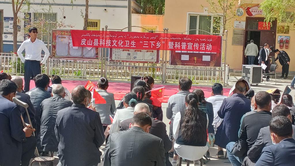 4月11日,皮山縣科協、宣傳部、文工團、司法局等十多家成員單位,利用周一升國旗在科鄉阿熱庫木村開展2022年科技“三下鄉”活動,以科技助力鄉村振興。