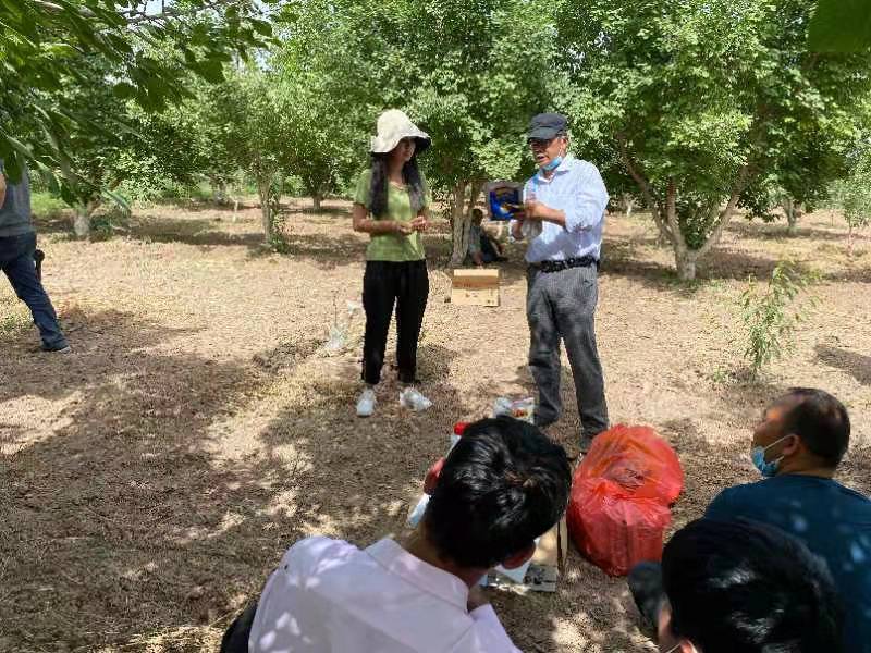5月28日,由廣東援疆工作前方指揮部和喀什地區(qū)科技局主辦,廣東援疆駐伽師縣工作隊(duì)和伽師縣科技局(科協(xié)),新疆田生苗農(nóng)林牧技術(shù)服務(wù)有限公司共同打造的英買里鄉(xiāng)英買里村新梅科技示范園迎來(lái)了第二次田間地頭送科技系列活動(dòng),本次活動(dòng)聘請(qǐng)安徽農(nóng)業(yè)大學(xué)付強(qiáng)教授進(jìn)行田間地頭授課。