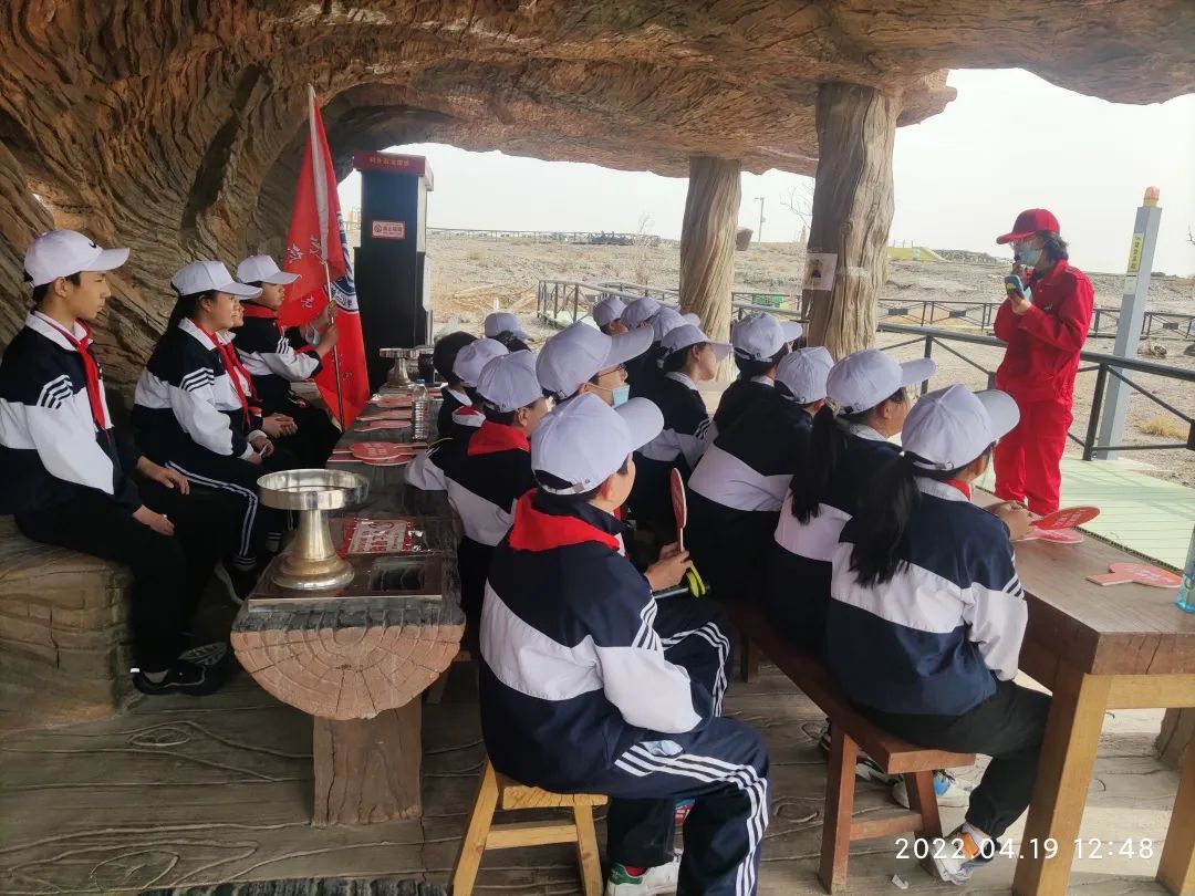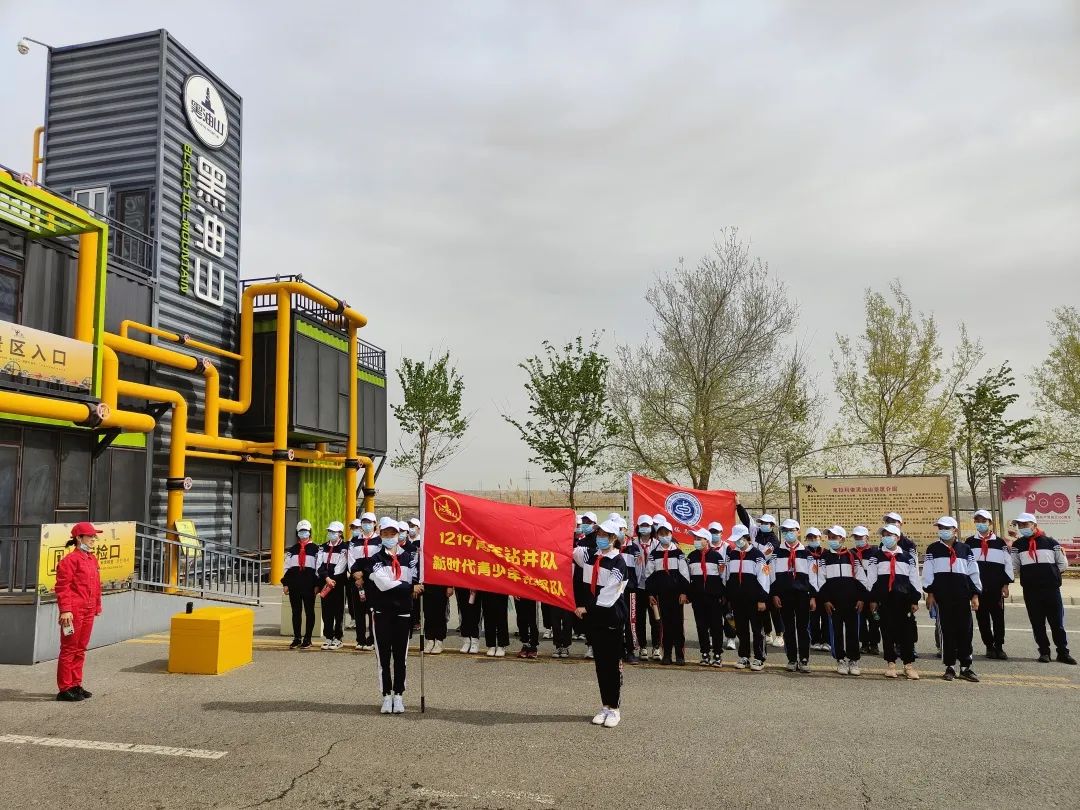 活動一開始,講解員給同學們授予了“1219青年鉆井隊、新時代青少年鉆探隊”的隊旗,并為同學們佩戴了隊章。同學們循著“1219青年鉆井隊”的足跡,踏上了研學之旅。