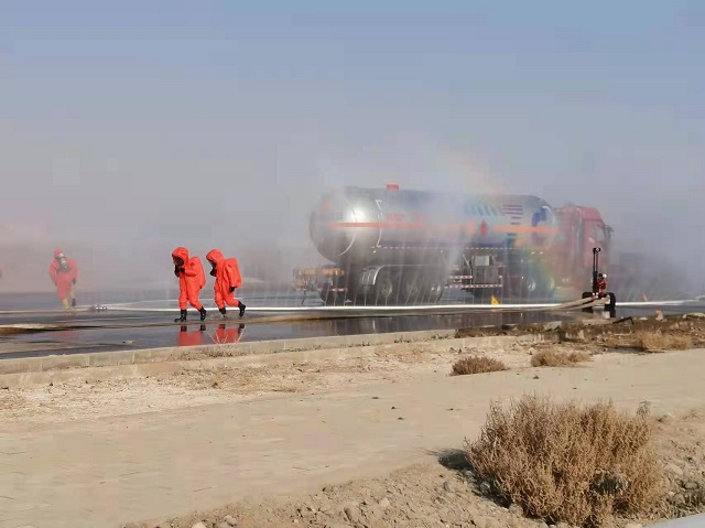 消防應急演練模擬突發火災,工作人員及時就近報警、就近滅火、疏散人員等應急處置措施。通過場景式應急演練,真實有效地檢驗了應急預案的各項流程,助力企業員工充分掌握帶壓堵漏裝備技術和滅火設施的實際操作能力。進一步補充完善應急處理閉環機制。