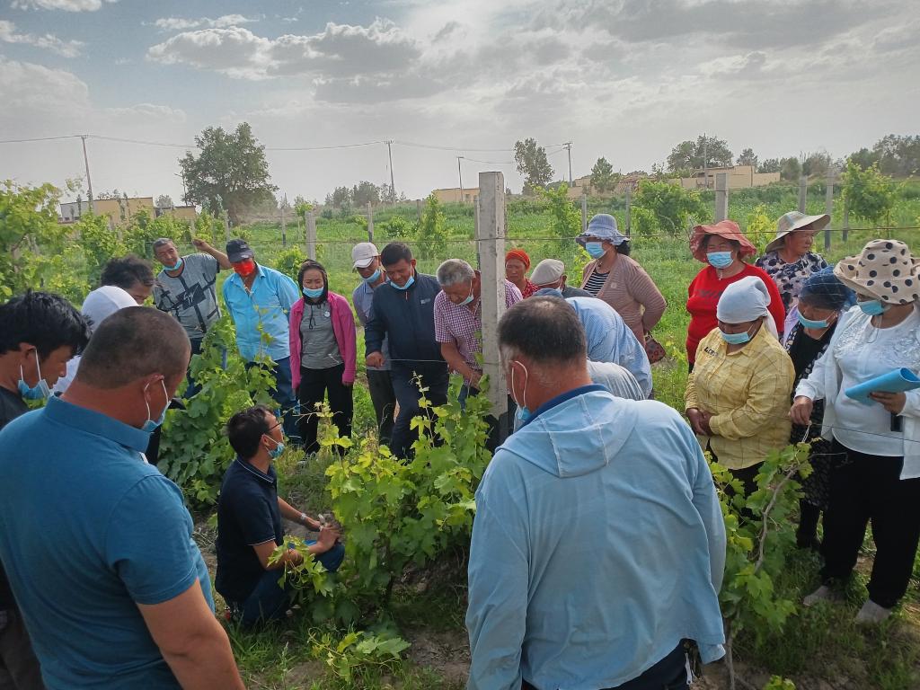 新疆農科所園藝所研究員張校立、楊生保兩位專家介紹林果業和蔬菜種植的成果和經驗,有效激發了農牧民群眾對發展林果業和蔬菜種植的興趣和積極性。大家一起走向田間地頭,結合實際開展現場教學,用通俗易懂、接地氣的語言給廣大群眾講解林果和蔬菜的種植、嫁接、修剪、病蟲害防治、施肥、澆水等技術,并現場示范操作,現場氣氛火熱,并就林果業管理、蔬菜種植病蟲害防治及相關難點、重點與現場人員互動,答疑解惑。