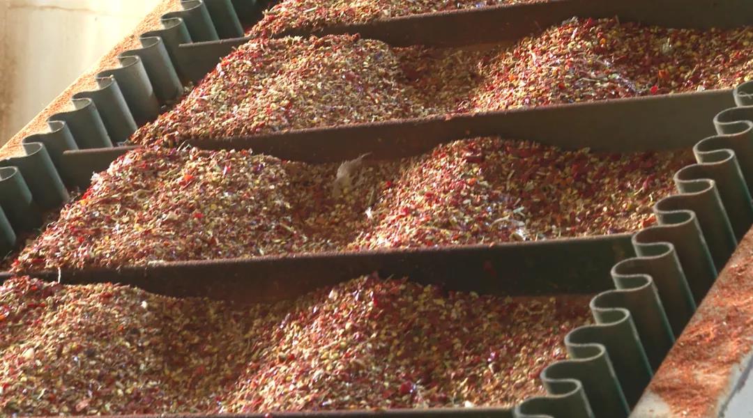 1月12日,記者走進和靜浩圓農產品專業合作社,一股濃郁的辣椒味撲面而來。據該合作社理事長陳明偉介紹,目前合作社場地中共有400——500噸辣椒。進行初加工的品種有板椒、紅23、903,這些辣椒經過上料去石、除塵、磨粉、造粒等工序,被制成辣椒粉、辣椒顆粒、剪把辣椒。