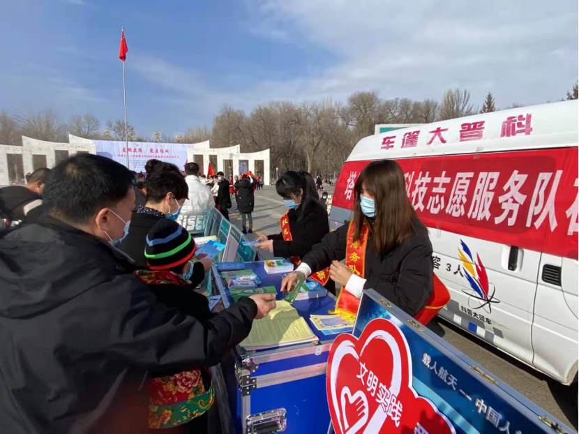 啟動儀式結束后,塔城市科協科普宣傳志愿服務隊在文化廣場為廣大群眾開展科普宣傳志愿服務活動,為廣大群眾發放科普宣傳畫冊、科普宣傳連環畫冊、健康生活宣傳冊、新型冠狀病毒預防指南折頁、牛羊疫病防治宣傳單、玉米病蟲害的防治等科普宣傳資料,還為大家講解了海洋生物及航天科技3D展板,受到了廣大群眾的喜愛。現場群眾通過佩戴3D眼鏡感受全真立體圖像帶來的震撼,大家連連驚嘆:“太奇妙了”。
