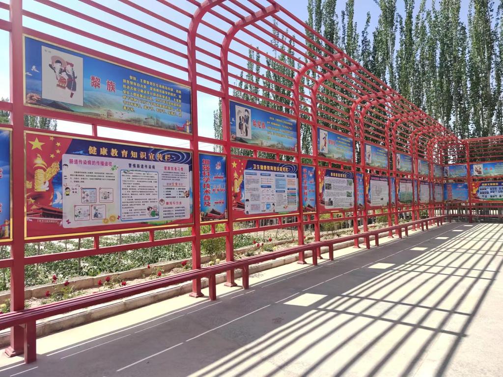 該鄉(xiāng)結合鄉(xiāng)村振興,爭取到總投資180萬元的綜合發(fā)展與環(huán)境改善工程項目,新建村級陣地及公共服務設施1000㎡,該項目為地上兩層,每層500㎡,現(xiàn)主體工程已竣工,沿建筑一周設立集科學普及、民族團結、新疆“四史”等相關內容為一體的科普長廊,營造了良好科普氛圍。