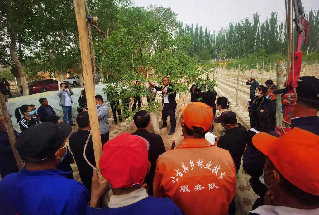 中組部選派浙江農學院博士生導師、葉城縣人民政府掛職副縣長高永彬強調管理中注意事項。他指出,果樹管護中不能搞“一刀切”,要結合樹冠、氣候原因因時而異、因地而異、因樹而異,根據果樹形狀“一時一議、一樹一議、一地一議”開展修剪和嫁接等科學管護,確保林地間作不受影響,林地間作持續增收。