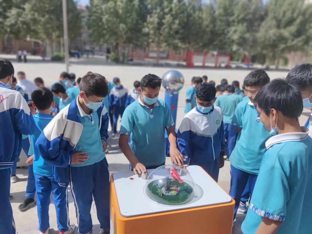七年級3班的學生阿布拉江·亞森說:“看到今天的這些科普設備,我很興奮,觀察了師生的科技作品,我很佩服他們,雖然我還不懂這些知識,但是我會好好學習,也會向他們一樣制作出更好的科技作品。”