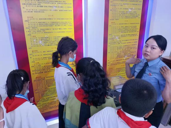 近日,拜城縣人民檢察院聯合教科局、科協、民政局、婦聯、團委、關工委等單位,組織全縣各校師生代表、律師代表等開展“攜手落實‘兩法’共護祖國未來”檢察開放日活動。活動中,縣人民檢察院“訴心”團隊的“訴心姐姐”帶領參會代表和學生們參觀了公開聽證室、12309檢察服務中心、公益訴訟快檢室、檢察榮譽室等場所,為大家講解檢察工作職能,解讀《未成年人保護相關法律法規》,引導大家用法律的武器維護自身合法權益。