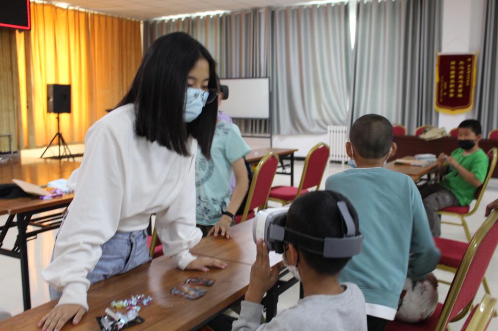 若羌縣文化社區(qū)此次活動的負(fù)責(zé)人裴聰穎帶領(lǐng)孩子們前往讀書角看科學(xué)類的書籍,若羌縣科協(xié)的志愿者為孩子們講解了人體器官分布及構(gòu)造、日常避雷、觸電急救、地震逃亡等知識,并為同學(xué)們準(zhǔn)備了VR眼鏡,讓他們觀看到“免疫細(xì)胞殺死病毒”“植物內(nèi)部構(gòu)造”“智能家居體驗”等精彩世界,VR眼鏡來到身臨其境的感官體驗和視覺沖擊碰撞出的花火,讓孩子們久久地沉浸在現(xiàn)代科學(xué)文明世界中,營造了講科學(xué)、愛科學(xué)、學(xué)科學(xué)、用科學(xué)、懂科學(xué)的良好氛圍。