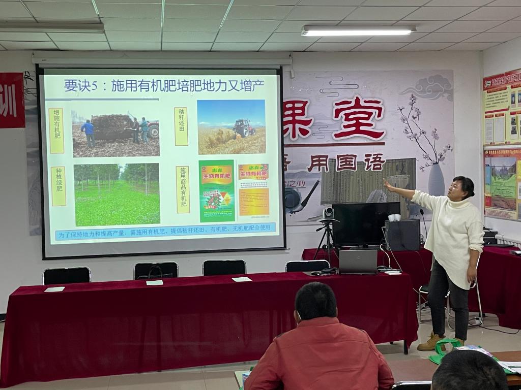 講座上,耿青云老師就當前國內農業形勢及種植方面關鍵技術開展詳細講解,講述了一系列種植和經營發展模式。他指出,當前要想發展農業致富,就要改變思想,改變傳統的種植觀念,學習先進種植技術和種植模式,在有限的土地上發揮出更大的經濟效益。在場人員醍醐灌頂,豁然開朗,紛紛表示回去后要堅持改變固有觀念。張建光老師在培訓中詳細地介紹了豬、牛、羊等動物在母畜生殖護理、幼犢生長期間的注意事項以及發生疫病時的防治辦法,并回答了學員提出的多個問題。田云峰老師就常見的果樹修剪技術、管護要點、病蟲害防控、肥水高效利用等作了詳細解答,并有針對性的解答了農戶果樹種植中遇到的技術困惑。