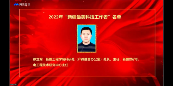 今天是5月30日是第六個(gè)“全國(guó)科技工作者日”,我區(qū)推薦的新疆工程學(xué)院科研處處長(zhǎng)、新疆煤礦機(jī)電工程技術(shù)研究中心主任徐立軍榮獲2022年“新疆最美科技工作者”。今天上午,2022年“全國(guó)科技工作者日”新疆主場(chǎng)活動(dòng)在新疆科技館舉行,禮贊在新疆維吾爾自治區(qū)創(chuàng)新發(fā)展中作出突出貢獻(xiàn)的優(yōu)秀科技工作者。