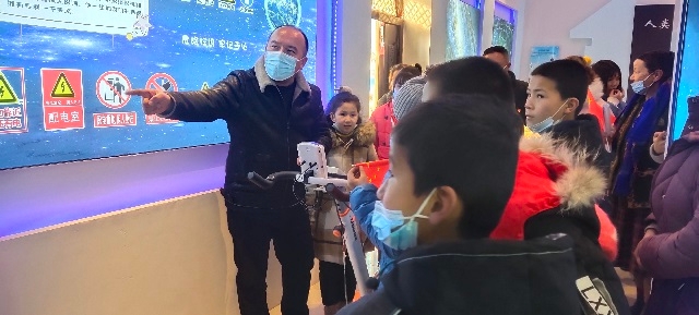 2月22日下午,輪臺縣輪臺鎮克孜勒村科普館十分熱鬧,科普講解員李培煬臉上露出笑容,向來自轄區的青少年講解人體導電的原理,現場一片忙碌。
