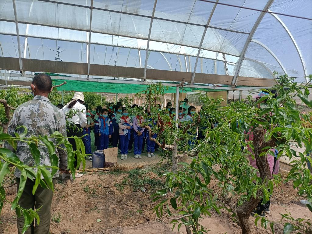 學生到達疏附縣南達現代牧場科普教育基地后,基地的工作人員向學生們簡單介紹了基地的基本情況,隨后帶領學生們參觀了葡萄園、桃樹園、杏園、沼氣站、牛羊養殖基地、飼料加工產等。學生們仔細地觀察著葡萄、桃樹等的生長情況,作為農民的子女,他們積極的向工作人員詢問家里在葡萄、桃樹種植等方面遇到的問題。