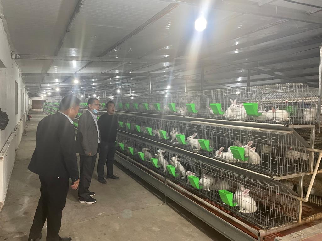 4月25日,烏蘇市科協孫厚典一行走進百泉鎮致富帶頭人陸萬軍家庭養殖農場,實地查看養殖場養殖情況、養殖規模,了解種兔繁殖、兔舍的環境治理、飼料的調配、銷售情況。