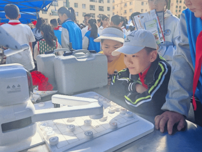 活動現場,學生們聆聽專業的知識講解,體驗消防服、消防設施,充分了解消防知識;觀看機器狗精彩的表演,與其互動感受科技魅力。同時,學生們展示了《人體穴位圖》《實驗室探究土壤酸堿性對植物生長的影響》等一系列創意作品,大家在校園里過足了“科技癮”。