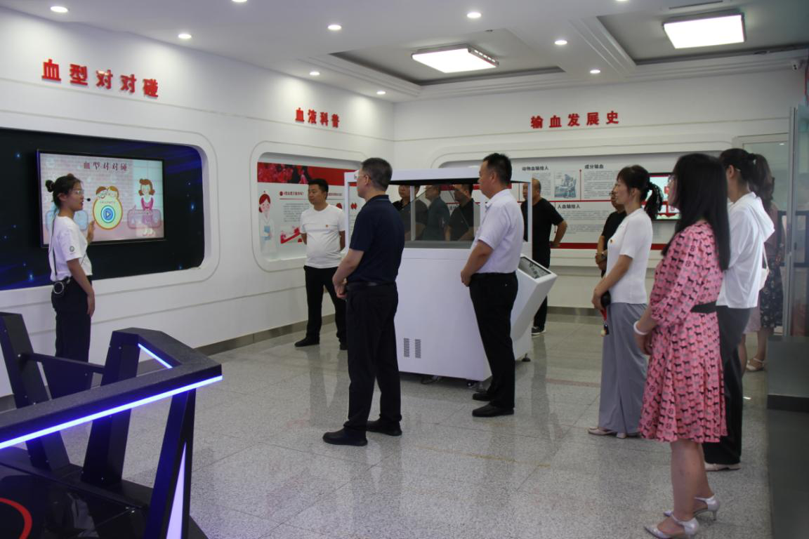 接著,大家又前往州中心血站,實地參觀了無償獻血科普教育基地、黨建長廊、血液知識VR科普體驗室等,講解員通過圖片、視頻、模型、全息投影等方式,給大家科普了白細胞、紅細胞、血小板、輸血發展史等血液知識,詳細介紹了血液采集、分離、檢驗、儲存等過程。此次交流互動,讓大家從拯救生命的角度了解無償獻血這項公益事業的崇高意義。