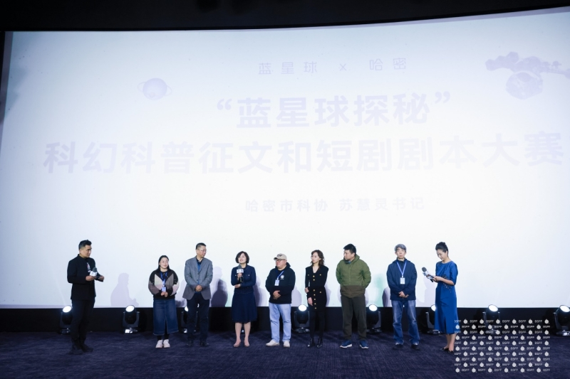活動現場,哈密市科協與藍星球科幻電影周聯合發布“藍星球探秘”科幻科普征文與短劇劇本征集大賽啟動儀式,邀請全國創作者以哈密豐富的自然資源、產業結構和未來方向為主題,進行作品創作。