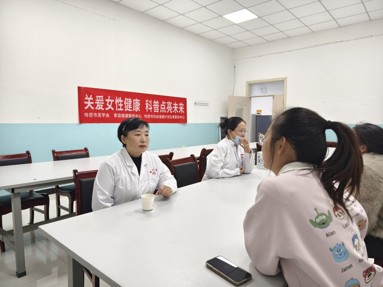 講座結束后,張醫生和來自哈密市婦幼保健計劃生育服務中心的中醫主治醫師高璐璐一同開展了義診活動,為有需要的教師提供咨詢服務。專家們專業精準的解答與細致入微的服務讓老師們感受到了濃濃的關懷,也對自己的健康狀況有了更加清晰的認識,更加明確了后續保健和治療方向。