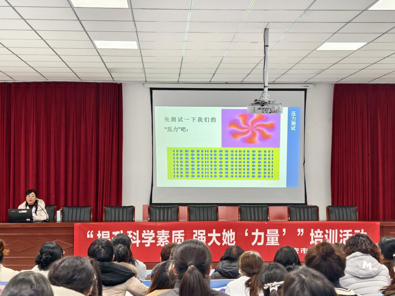 隨后,來自哈密市第二人民醫院的國家二級心理咨詢師楊艷通過理論講解、案例分析和互動游戲,深入剖析女教師常見的心理壓力源,如教學任務、學生管理、職業發展與家庭平衡等問題,并分享實用的心理調試方法,如情緒管理、放松訓練和積極的自我暗示等,助力女教師增強心理韌性。