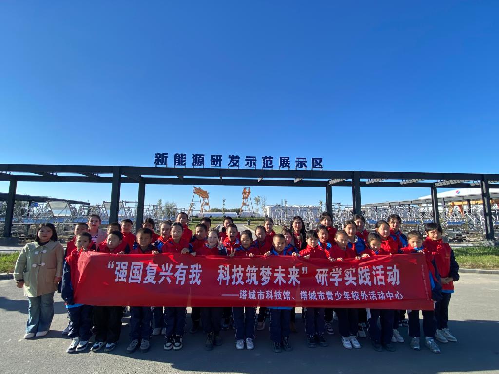 活動第一站參觀了國家電投塔城新能源創新博覽園(綠能科普館),通過講解員的介紹,孩子們了解到了有關國家新能源的科普知識。