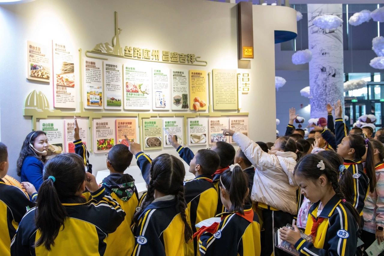 奇臺縣第六小學的同學們在科普志愿者的帶領下,走進了新疆地理標志運營推廣中心,開啟了一段充滿探索與發現的旅程。同學們被分成若干小組,深入探索了推廣中心的各個展區。從新疆棉花的傳播途徑到發展歷史,從獨特的地理環境到地理標志產品的發展,再到品牌保護與市場推廣的策略,每一個環節都讓同學們眼界大開,深入了解了家鄉地理標志產品的發展歷程和地標文化的內涵。