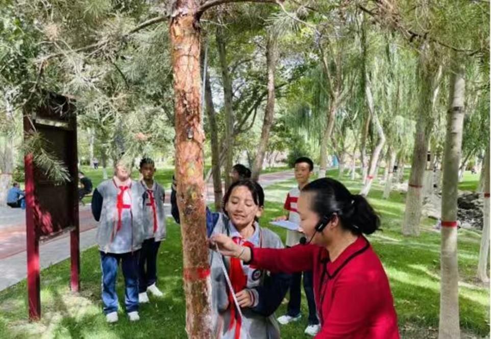 此次活動走進了庫爾勒市第十八中學的七年級課堂,為學子們帶來了一場生動的自然科學課。在課堂上,輔導員老師深入淺出地講解了城市道路綠地的多重功能,包括凈化空氣、調節氣候、美化環境等重要作用。同時,學生們還學習了如何科學地對植物進行分類,掌握了喬木調查指標中的基礎數據測量與記錄方法,為實地開展喬木調查研究打下了基礎。