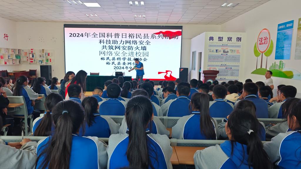 2024年9月9日至9月15日是國家網絡安全宣傳周。為科學普及網絡安全知識,增強青少年網絡安全意識,提升青少年科學素質,塔城地區裕民縣科協聯合裕民縣委網信辦,組織裕民縣第一中學高一年級組的160名學生開展“科技助力網絡安全,共筑校園網安‘防火墻’”2024年全國科普日裕民縣系列活動。