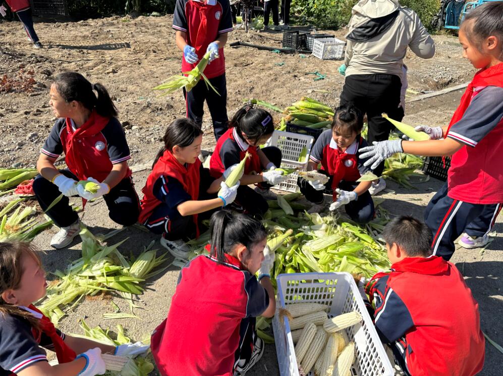 在互動環節中,科技輔導員們從農業食品安全角度出發,結合生活常識為學生們科普影響農產品質量安全因素、科學合理使用農藥等知識。在豐收勞動中,學生拿起籃子、水桶奔赴農耕園,用稚嫩的雙手采擷豐收的碩果。大家分工有序、忙而不亂。有的學生拔起綠油油的西瓜,有的學生在使勁摘滾圓的冬瓜,有的學生在采摘玉米棒子……種植園內洋溢著一派農田生活氣息,彌漫著其樂融融的收獲喜悅。