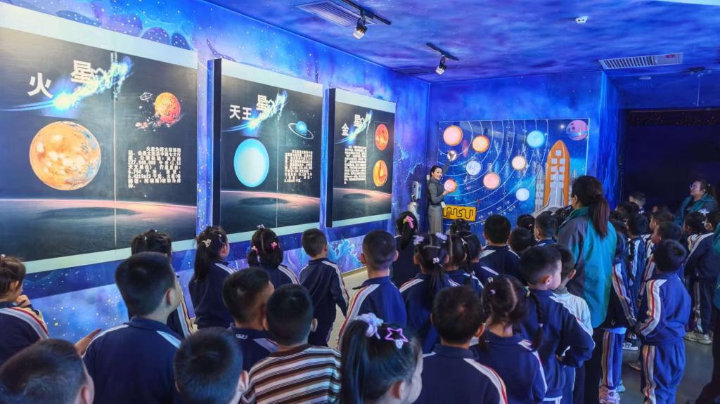 活動中,通過模型展示、講解以及沉浸式的互動體驗(yàn),讓孩子們仿佛穿越時空,親身來到八大行星的身旁。隨后帶領(lǐng)孩子們參觀操控小飛機(jī),孩子們在工作人員的指導(dǎo)下,親手嘗試操控小飛機(jī)的盤旋。緊接著介紹“怒發(fā)沖冠”靜電,通過生動有趣的解說和互動展示,讓孩子們了解靜電科學(xué)小知識。最后在科技輔導(dǎo)員的帶領(lǐng)下讓孩子們參與“火焰掌”的實(shí)驗(yàn)中體驗(yàn)科學(xué)的神奇和魅力。