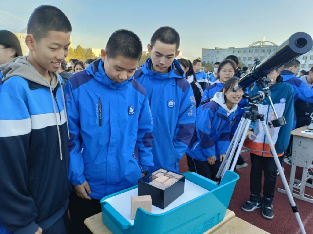 此次活動形式多樣、內(nèi)容豐富,多種類型科技活動同時開展。在教學樓體驗類活動區(qū)域,塔城市流動科技館帶來了機器狗、“阿爾法”機器人、六足機器人、VR眼鏡、科學家精神展板、多彩的拼塊等科普展品。在科技館科普志愿者的指導下,同學們有序地體驗各項展品展具,通過動手操作、動腦思考,去發(fā)現(xiàn)科學、認識科學,感受科學技術(shù)的發(fā)展與魅力。