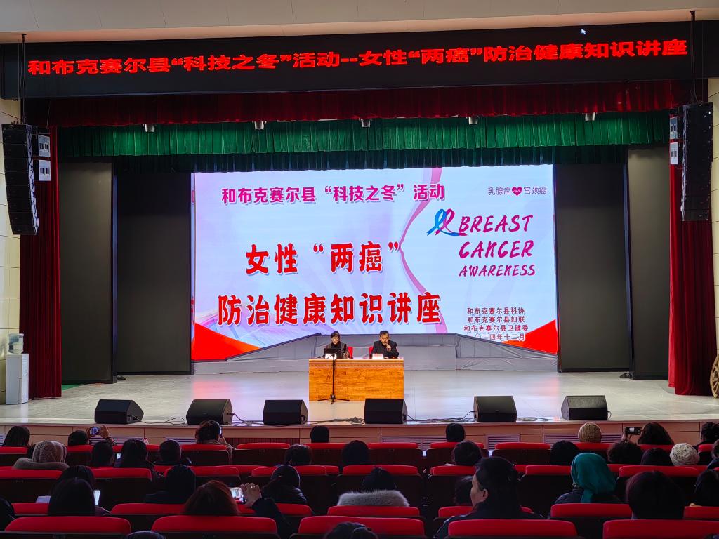12月26日,和布克賽爾縣科協(xié)聯(lián)合縣婦聯(lián)、衛(wèi)健委在縣影劇院舉辦了2024—2025年“科技之冬”系列活動——女性“兩癌”防治健康知識講座,各鄉(xiāng)鎮(zhèn)場、社區(qū)(村隊)及縣直部門近200名女性干部群眾參加了培訓。