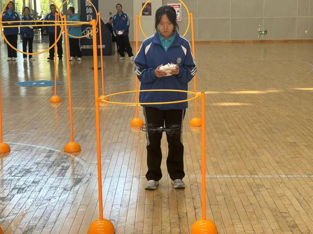 活動現(xiàn)場,烏蘇市科協(xié)工作人員帶來了多種類型的無人機(jī),特邀航天創(chuàng)客奧林匹克大賽評委、全國航天模型科技輔導(dǎo)員培訓(xùn)講師邢銳老師,給學(xué)校師生進(jìn)行現(xiàn)場展示與講解,介紹無人機(jī)的結(jié)構(gòu)、功能、操控方式和應(yīng)用場景,讓學(xué)生直觀地感受無人機(jī)的魅力。在展示環(huán)節(jié),烏蘇市第一中學(xué)無人機(jī)社團(tuán)的同學(xué)們在專業(yè)人員的指導(dǎo)下,親自操控?zé)o人機(jī)通過障礙進(jìn)行飛行,這不僅讓學(xué)生們感受到了科技的魅力,也提高了他們的動手能力和團(tuán)隊(duì)協(xié)作能力。