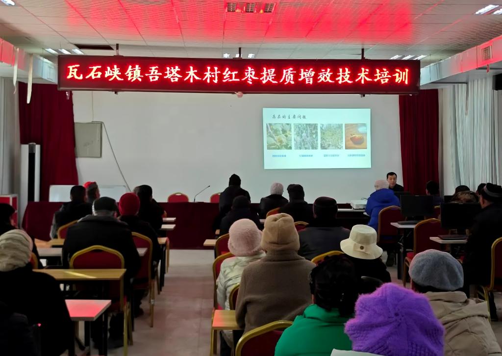 1月10日,若羌縣科協在瓦石峽鎮吾塔木村組織開展紅棗提質增效技術培訓活動,旨在提升棗農種植技術水平,助力紅棗產業發展。