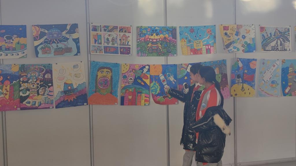 下午時分,當一小的同學們踏進科技館的大門,首先映入眼簾的是一幅幅充滿想象力的科幻畫展和琳瑯滿目的科幻手工藝展區。這些作品或描繪著遙遠星球的奇異景觀,或展示著未來科技的奇妙構想,每一件都天馬行空、獨具匠心。同學們被這些作品深深吸引,紛紛駐足觀賞,你一言我一語地討論起來,不時發出陣陣驚嘆。