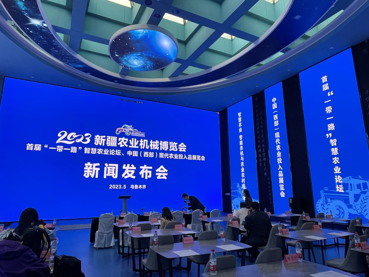 5月17日,2023 新疆農(nóng)業(yè)機(jī)械博覽會(huì)、首屆 “一帶一路”智慧農(nóng)業(yè)論壇、中國(guó)(西部)現(xiàn)代農(nóng)業(yè)投入品展覽會(huì)新聞發(fā)布會(huì)在新疆科技館舉行。
