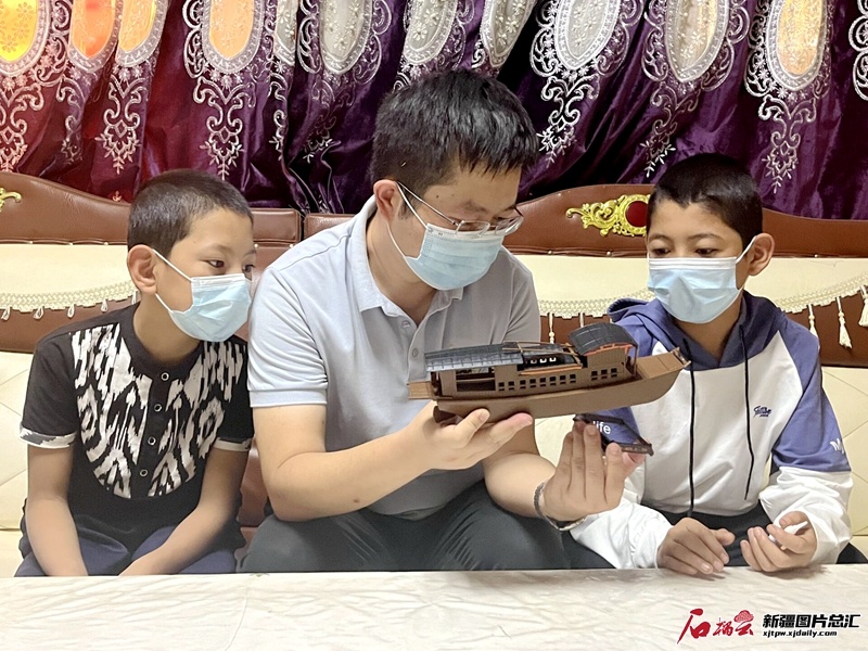 像這樣輔導(dǎo)孩子功課的一幕幕,過去幾年時常上演。身為新疆維吾爾自治區(qū)科協(xié)駐繁榮村“訪惠聚”工作隊隊員,盛凱自2017年與阿尤普一家結(jié)為親戚以來,變著法子提升孩子的學習興趣,出點子幫阿尤普一家開店,教授他們科學種植養(yǎng)殖知識,是阿尤普家的“智多星”。