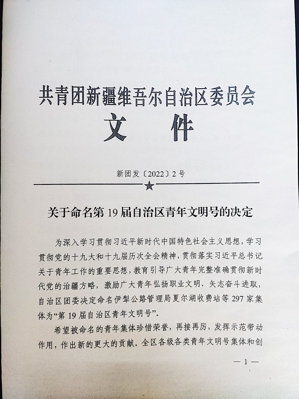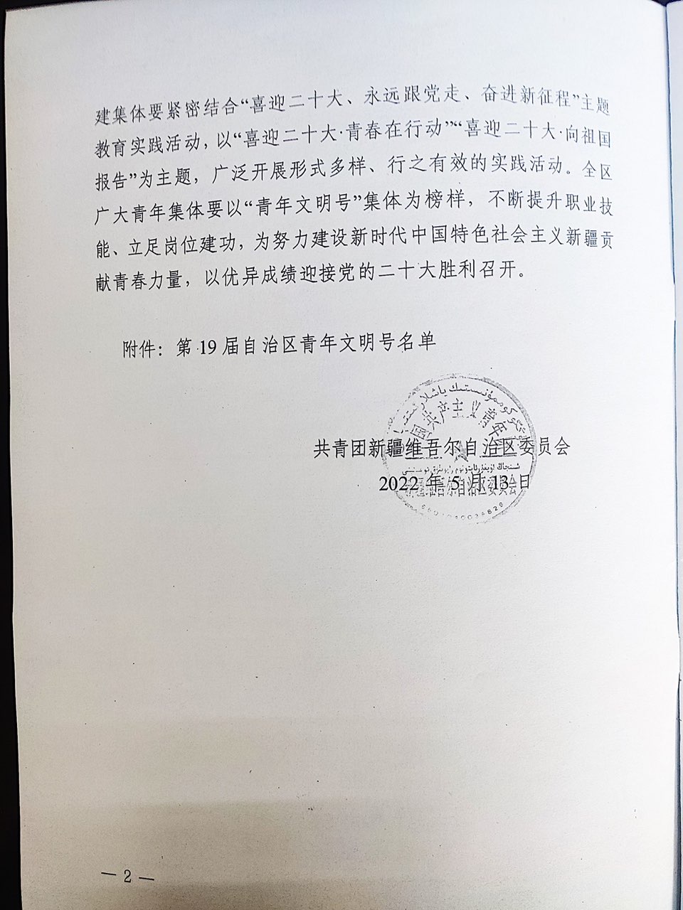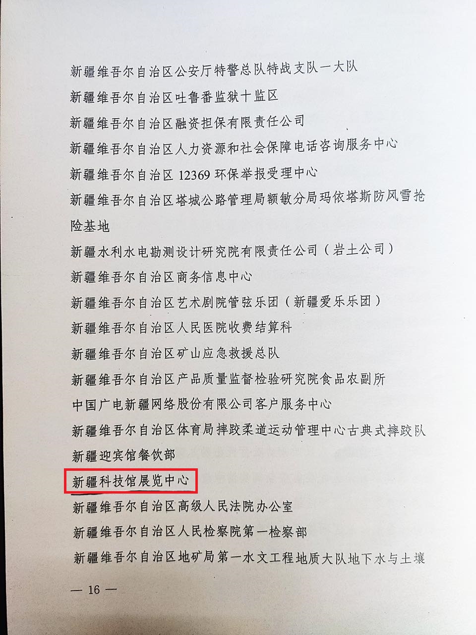 根據(jù)共青團新疆維吾爾自治區(qū)委員會《關(guān)于命名第19屆自治區(qū)青年文明號的決定》(新團發(fā)【2022】 2號),新疆科技館展覽中心榮獲“第19屆自治區(qū)青年文明號”榮譽稱號。