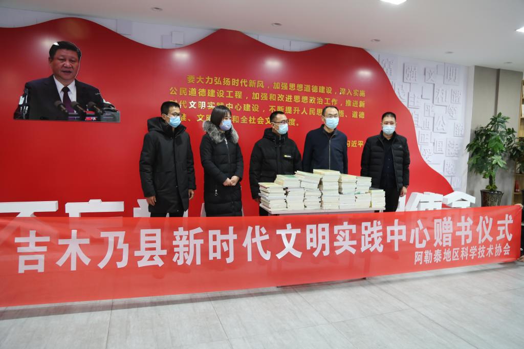 為進一步提高公眾科學素質,增強科普在文化潤疆中的作用,1月6日,阿勒泰地區科協黨組書記陳軍赴吉木乃縣新時代文明實踐中心開展贈書活動,吉木乃縣宣傳部常務副部長趙厚玉、副部長吳煜,吉木乃縣商科工信局局長馬鋼、縣科協副主席王安海等領導和相關部門負責人16人參加贈書儀式。