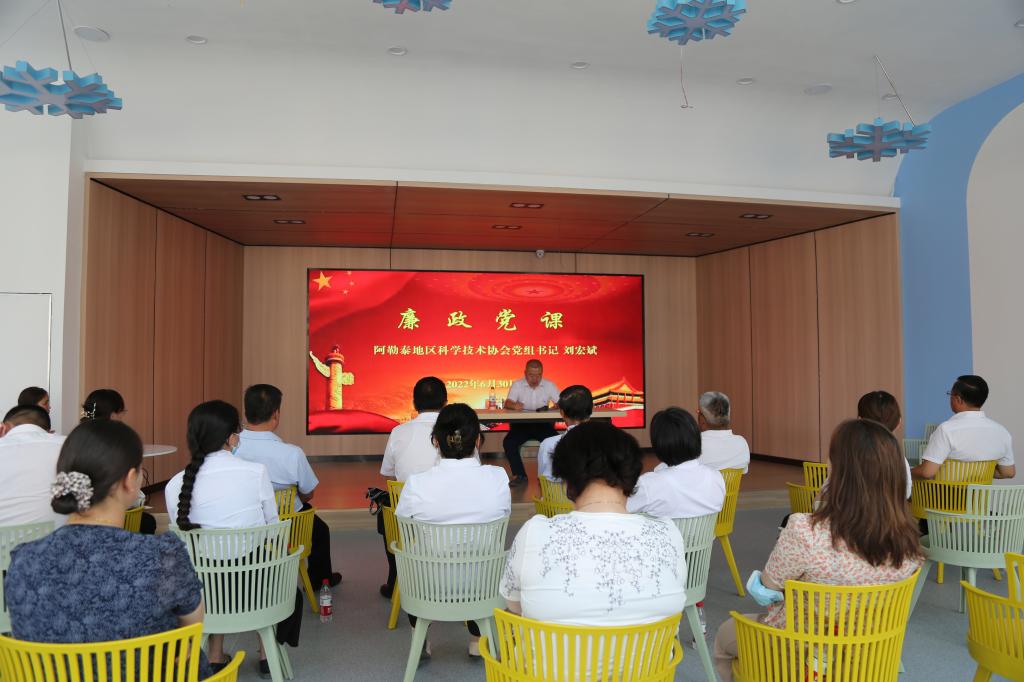一是上一節廉政黨課。阿勒泰地區科協黨組書記、一級調研員劉宏斌為全體黨員上黨課,以“繼續推進新時代黨的建設新的偉大工程”為主題,圍繞全面從嚴治黨、“四個全面”“四個偉大”、“以人民為中心”的必然要求、面對世界百年未有之大變局的中國應對、解決黨內存在的矛盾和問題的現實需要、新時代關于治黨的內涵和論述,執政能力的科學方法等內容,為在場黨員干部上了一堂鮮活生動、精彩務實的專題黨課。