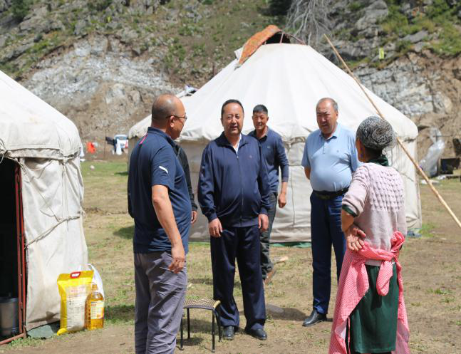 在困難牧民賽力克家中,孜亞提汗·胡那皮亞同志了解到他家中老人年老體弱,長期服藥,生活困難,叮囑相關(guān)人員要把群眾冷暖放在心上,結(jié)合下基層實踐活動,扎實做好困難群眾的幫扶工作,切實解決好生活中的實際困難。