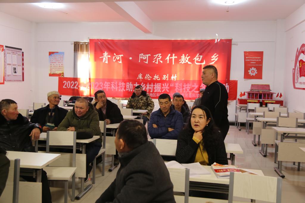 為全面貫徹落實黨的二十大精神,加快農業農村現代化,推動鄉村產業升級,增強可持續發展能力,同心協力全面推進鄉村振興,2月20日,阿勒泰地區科協科技工作者和農業技術推廣中心專家前往青河縣阿熱勒鎮布哈巴村、冬特村、阿尕什敖鄉阿克加爾村、庫倫托別村,開展科學養殖相關培訓和反邪教宣傳活動。
