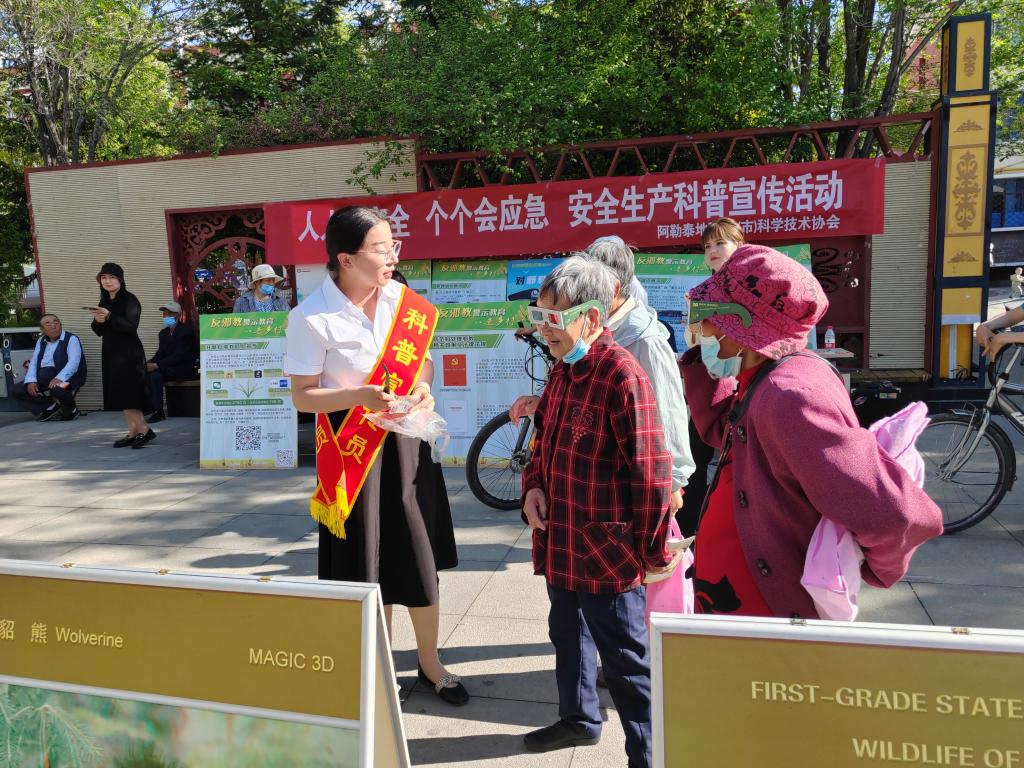 阿勒泰地區科協二級主任科員夏興發說:“今天我們科普大篷車地、縣、市聯合行動,走進了青河縣,我們的目的就是做好科普宣傳的推廣與普及,走進基層‘最后一公里’,為全民科學素質提升貢獻科協力量。”