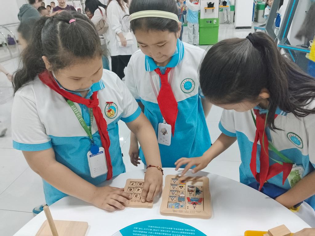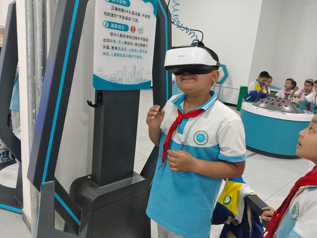 參觀過程中,科技輔導員耐心地向同學們介紹和講解科技展品。同學們參觀體驗了模擬身高、人體發電、地震體驗VR、裸眼3D(幻影成像技術)、魯班鎖等科普展品,紛紛被展館內各種高科技展品深深吸引,不時發出贊嘆聲,并表示有時間還要和家人一起再過來看看。