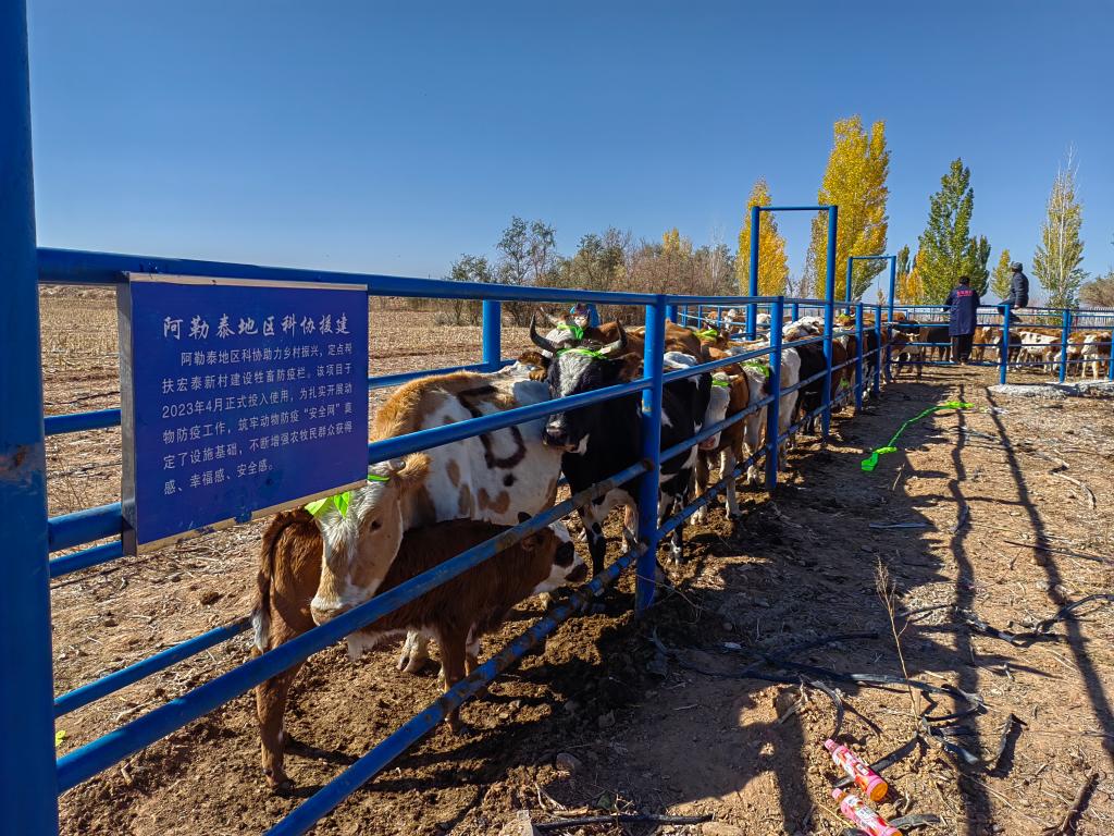 根據(jù)阿勒泰地區(qū)科協(xié)黨組的安排, 10月12日,阿勒泰地區(qū)科協(xié)三級(jí)調(diào)研員、地區(qū)反邪教協(xié)會(huì)理事長白金玉一行等前往富蘊(yùn)縣鐵買克鄉(xiāng)鄉(xiāng)村振興示范村宏泰新村驗(yàn)收牲畜防護(hù)欄幫扶項(xiàng)目。