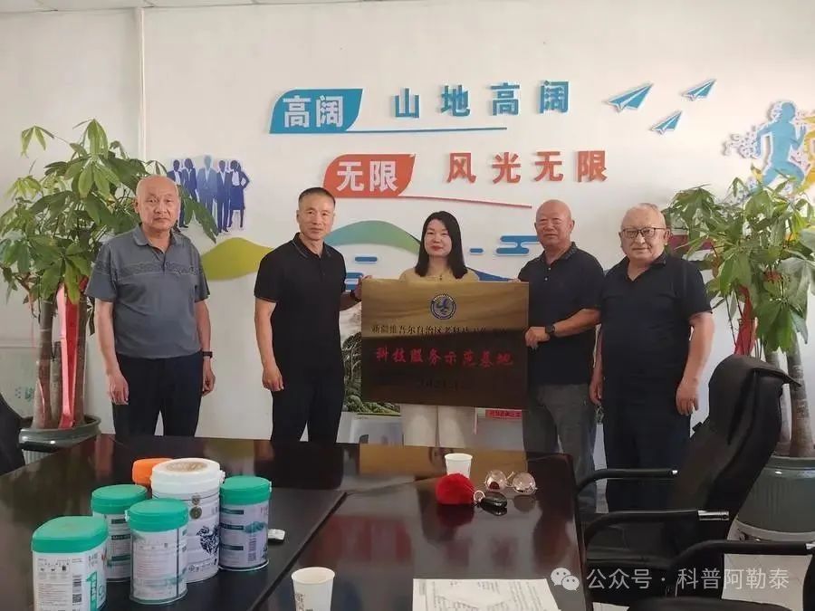 2024年,阿勒泰山地生物科技有限公司等6家單位,在科技示范帶動、合作推廣、科學研究等方面取得實效,并被新疆老科協(xié)命名為2024年度科技服務示范基地。地區(qū)老科協(xié)調(diào)研組在開展實地調(diào)研的同時,為阿勒泰山地生物科技有限公司進行授牌。此舉進一步激發(fā)了廣大老科技工作者的老有所為、積極作為的工作熱情。