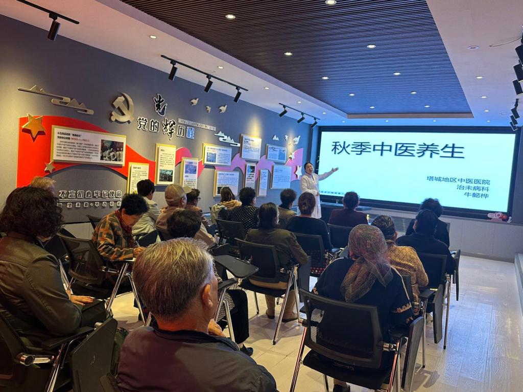 講座中,專家圍繞心腦血管、糖尿病、高血壓等常見病、慢性病進行詳細講解,深入淺出地介紹病因、預防控制方法及合理膳食如何選擇等。通過秋季中醫養生專題講解,讓轄區老年居民明白了運動也宜選擇輕松平緩,可通過學習傳統的太極拳、靜坐、站樁、健美操、散步、騎自行車等,從身體內部改善體質,達到養生效果。