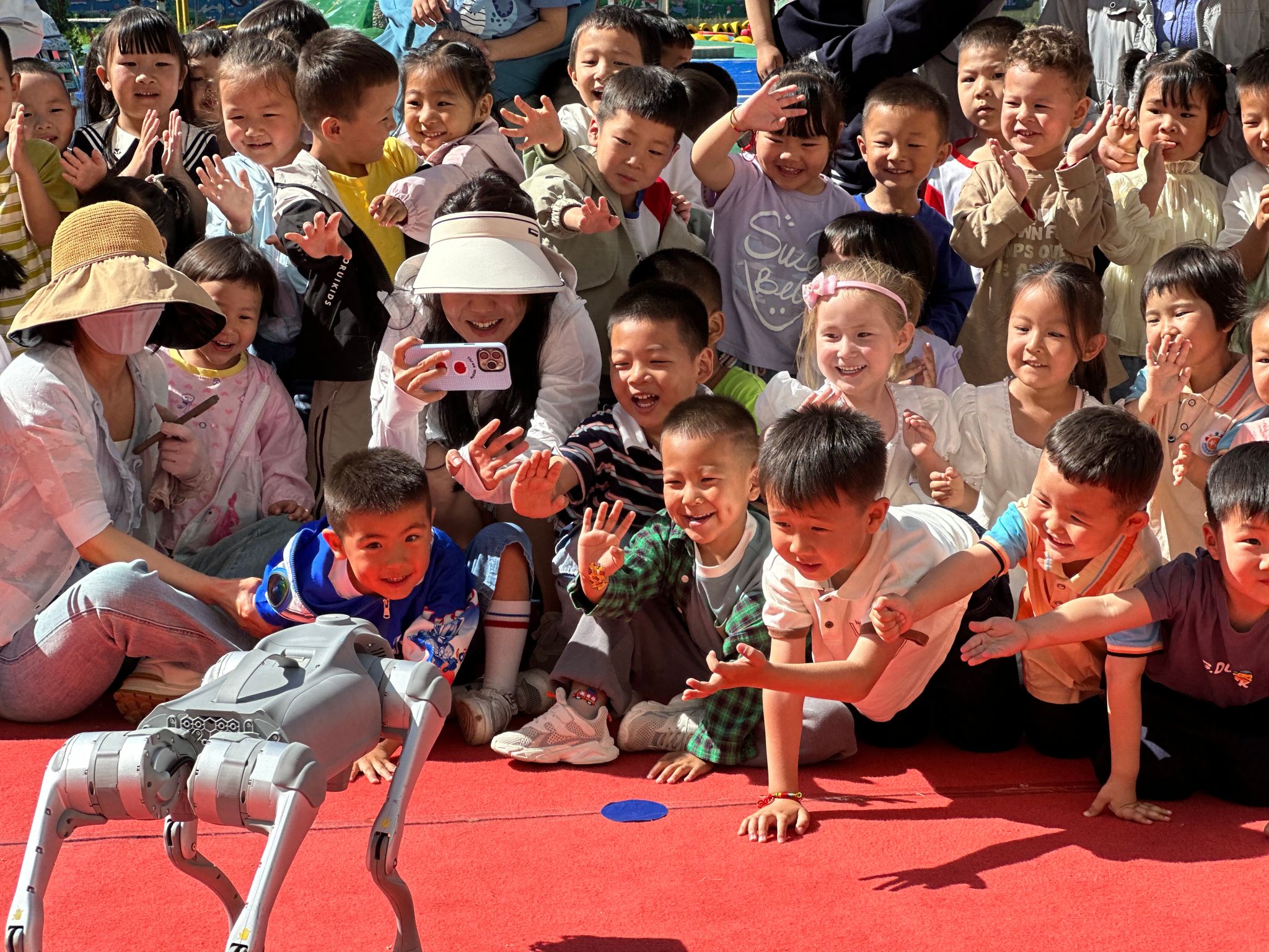 活動現場,“聲光電互動裝置”區域圍滿了好奇的孩子,在科普志愿者引導下,孩子們親手操作,見證了電能轉化為光能、聲能的奇妙過程,真切感受到物理世界中能量轉換的魅力,機器狗表演引發陣陣驚嘆,大家踴躍探究其背后的科技原理。