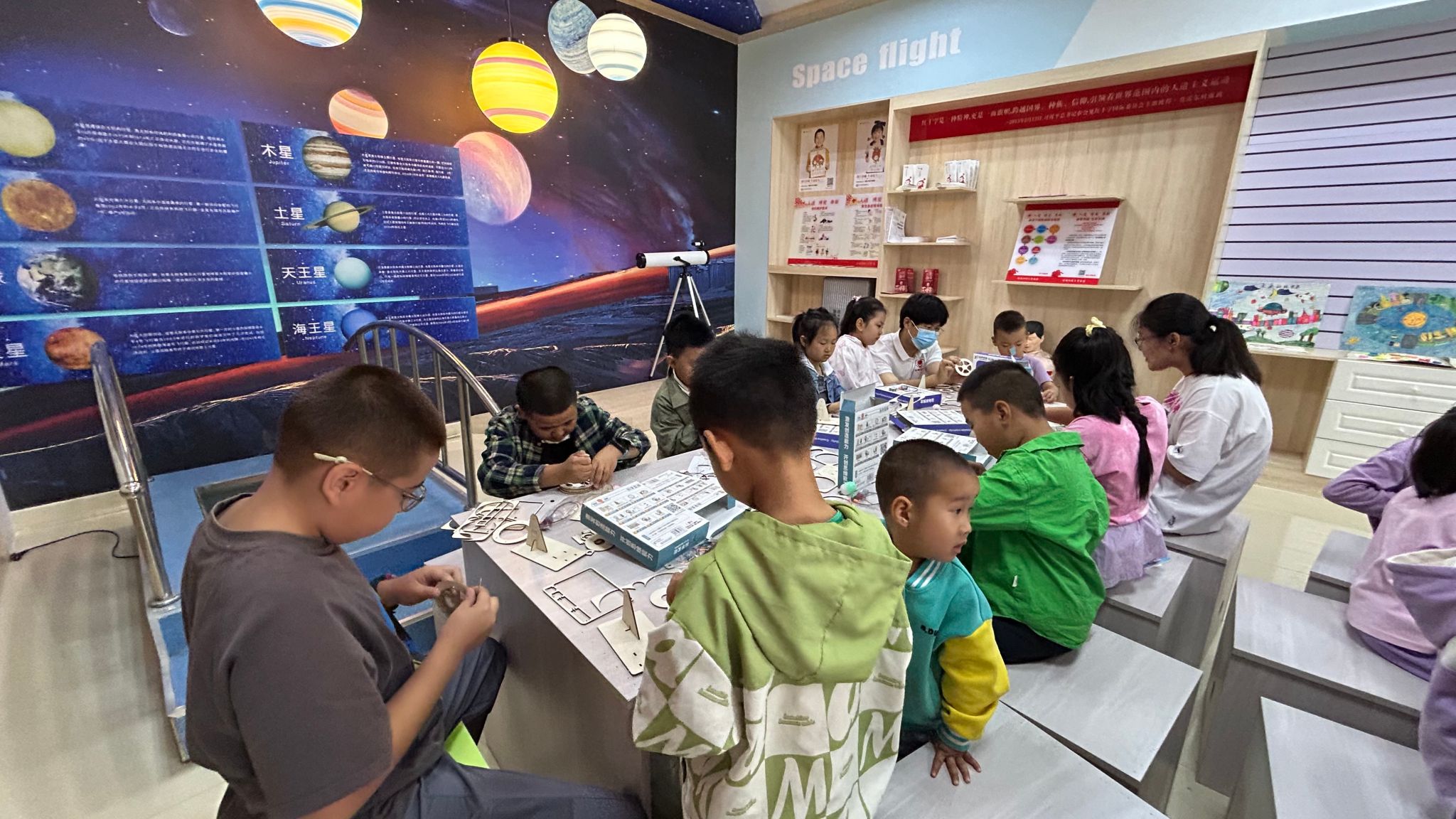 活動中,科普志愿者將大篷車上的各種科普趣味演示儀器組裝好后,引來了在場孩子們的圍觀,另一邊,機器狗也成為了孩子們的焦點。它不僅能做出握手、前空翻、作揖等一系列高難度動作,還能聽從指令,與孩子們親密互動。孩子們興奮地圍在機器狗身邊,眼中滿是好奇與驚喜,紛紛想要和這位“高科技小伙伴”親密接觸。機器人靈活的身姿、精準的動作,引得周圍觀眾陣陣歡呼,掌聲不斷。孩子們戴上VR眼鏡,瞬間“穿越”到浩瀚宇宙,發出陣陣驚嘆。動手操作科普展品時,大家爭先恐后嘗試,不斷向科普志愿者詢問展品的科學原理,并通過互動體驗,享受了一頓豐盛的科普大餐。