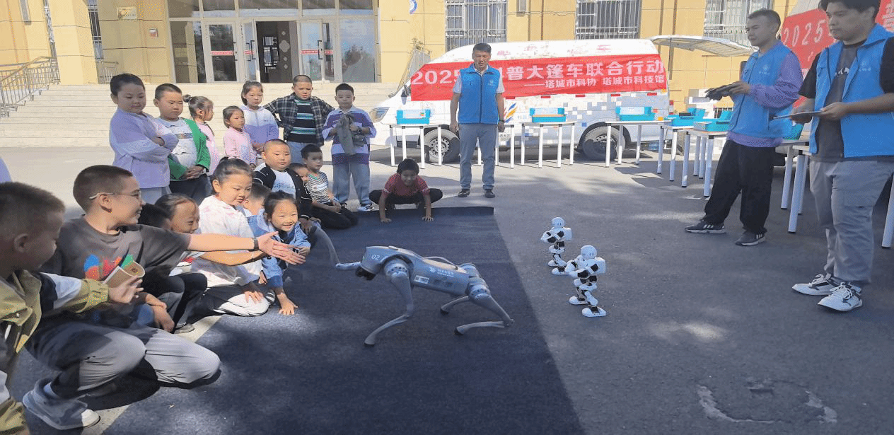 活動現場,科普大篷車剛一亮相,就吸引了眾多小朋友的目光。機器人和機器狗區域人氣最旺,靈活的機器人不僅能精準地做出各種復雜動作,如太空漫步、俯臥撐等,還能與居民進行簡單對話,引得大家陣陣驚嘆。一旁的機器狗也毫不遜色,它們模仿真實小狗的動作,時而奔跑,時而跳躍,還能聽從指令與小朋友們握手,萌態十足,逗得現場孩子們歡笑不斷。