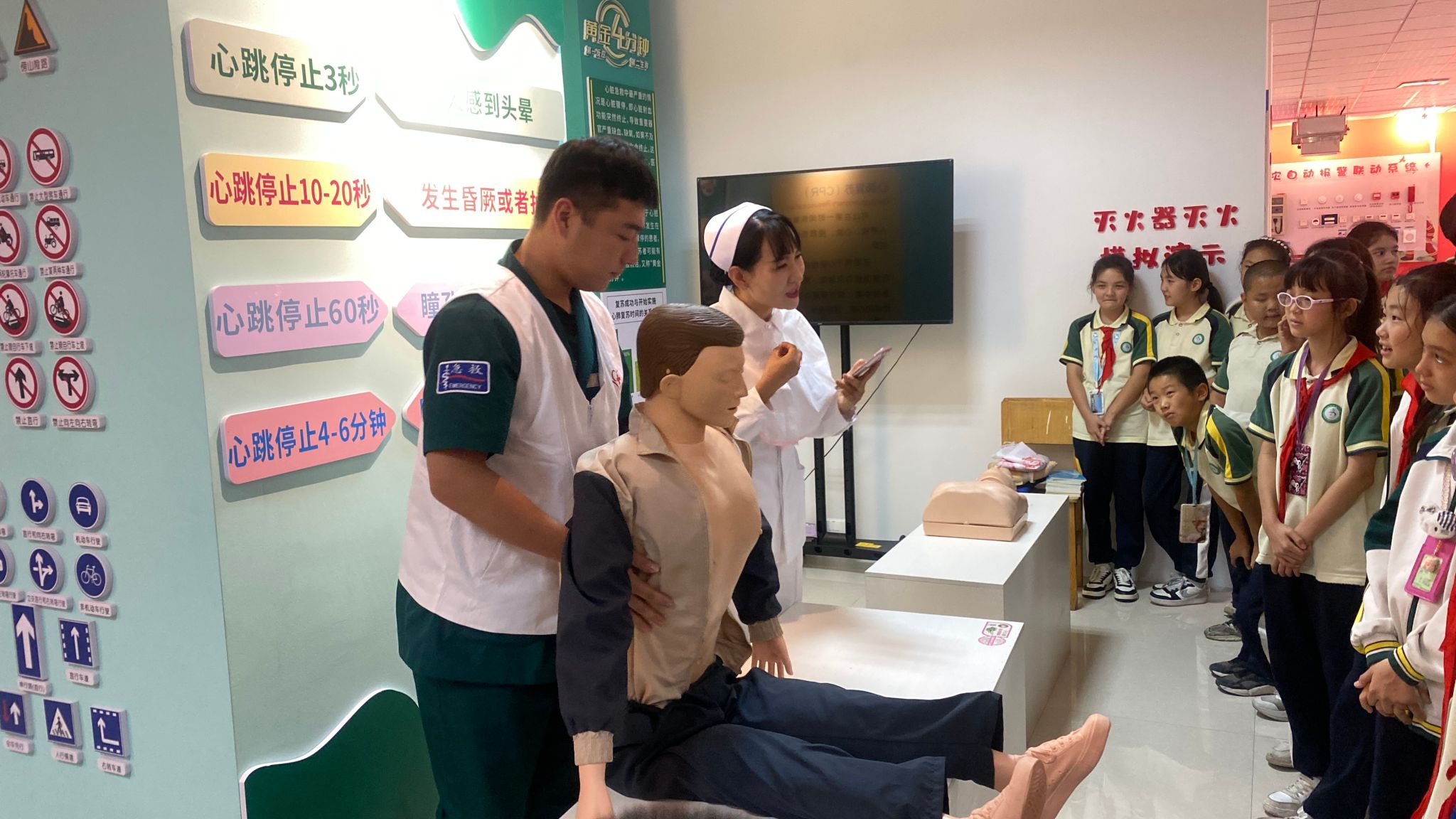本次活動在塔城市科技館開展,邀請塔城市第五小學五年級三班學生參加?;顒蝇F場,專業講師圍繞心肺復蘇、海姆立克急救法等基礎急救知識展開講解,重點介紹了“黃金四分鐘”的重要性,還結合心臟驟停不同時間人體反應等生動案例,讓學生們直觀了解急救要點。