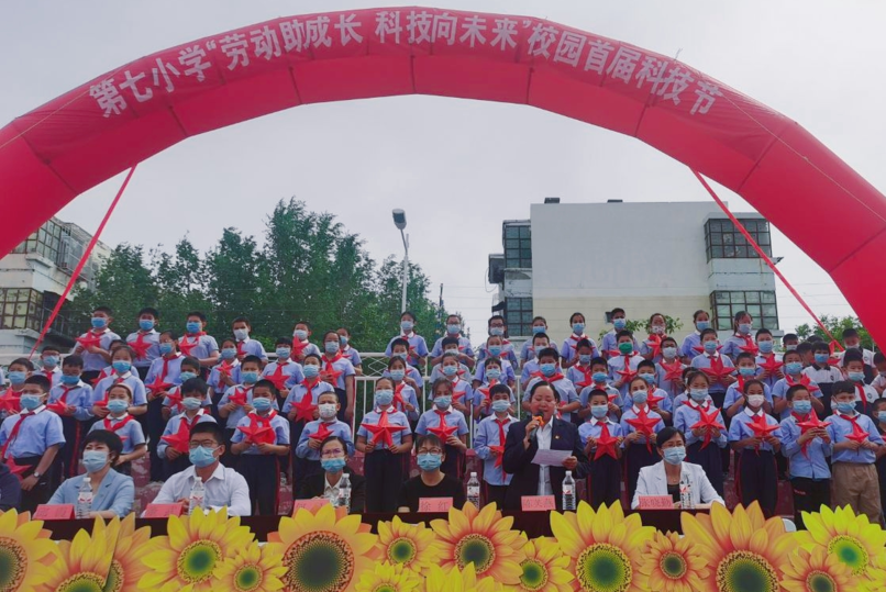 科技初心賦創(chuàng)新,助力勞動絢麗花。5月12日,克拉瑪依市第七小學(xué)全體師生共同迎來了首屆科技節(jié)開幕式。本屆科技節(jié)的主題是“勞動助成長,科技向未來”。科技節(jié)開幕營造了濃厚的學(xué)科學(xué)、愛科學(xué)、用科學(xué)的校園氛圍。